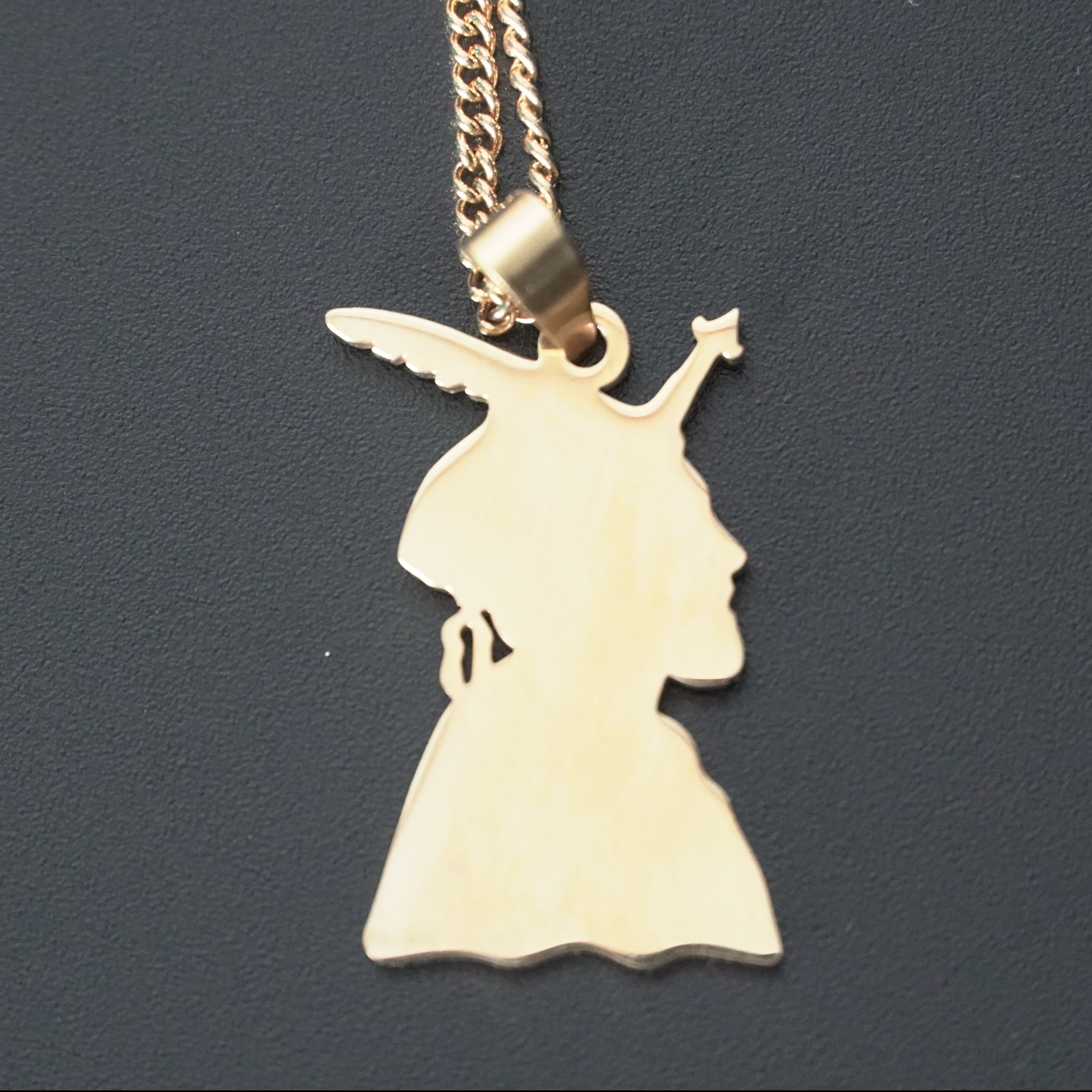 The necklace is strung on a delicate chain that is also plated with 14-karat gold, adding to the overall high-end look of the piece. The chain is adjustable, making it the perfect fit for anyone. The necklace is lightweight and comfortable to wear, making it suitable for daily use.