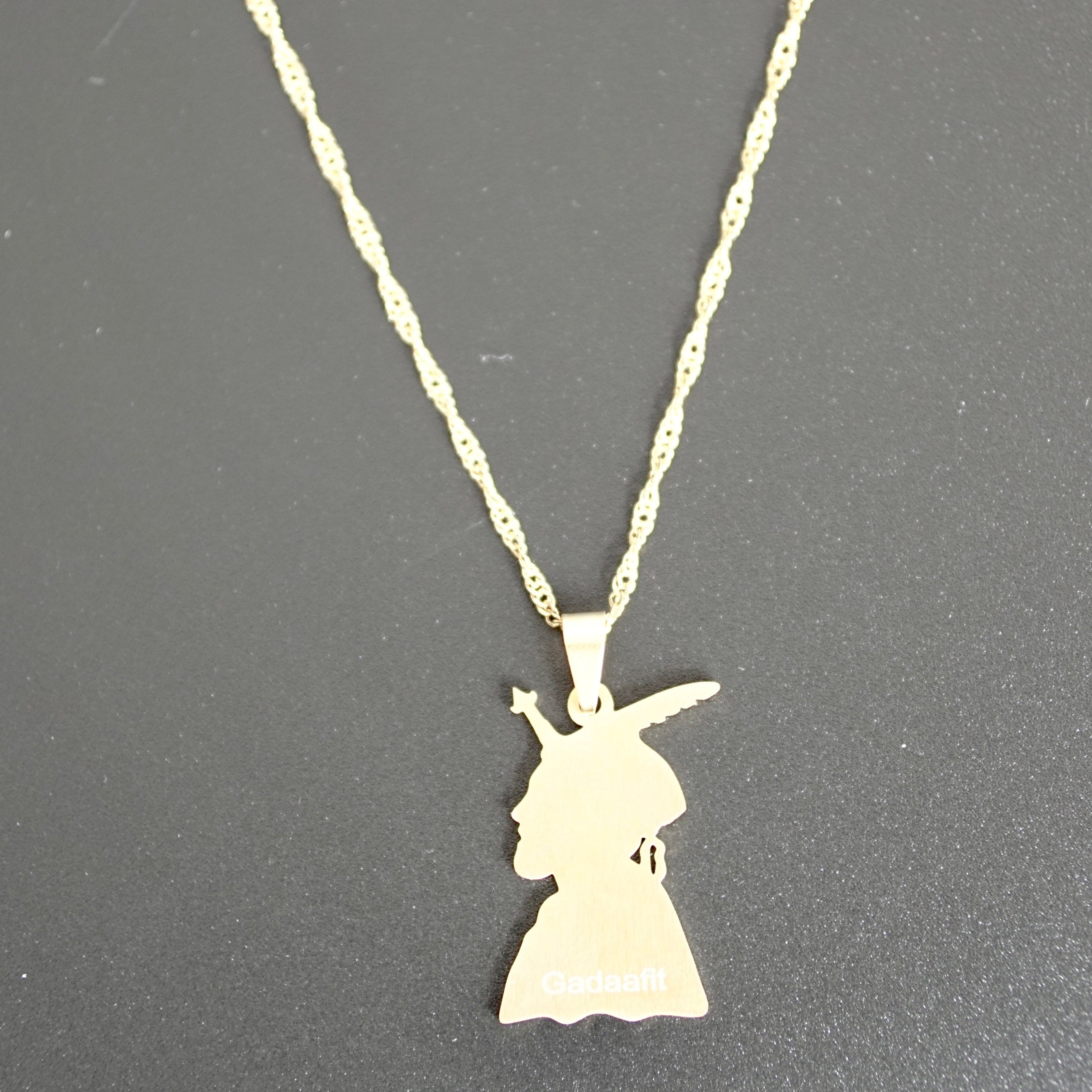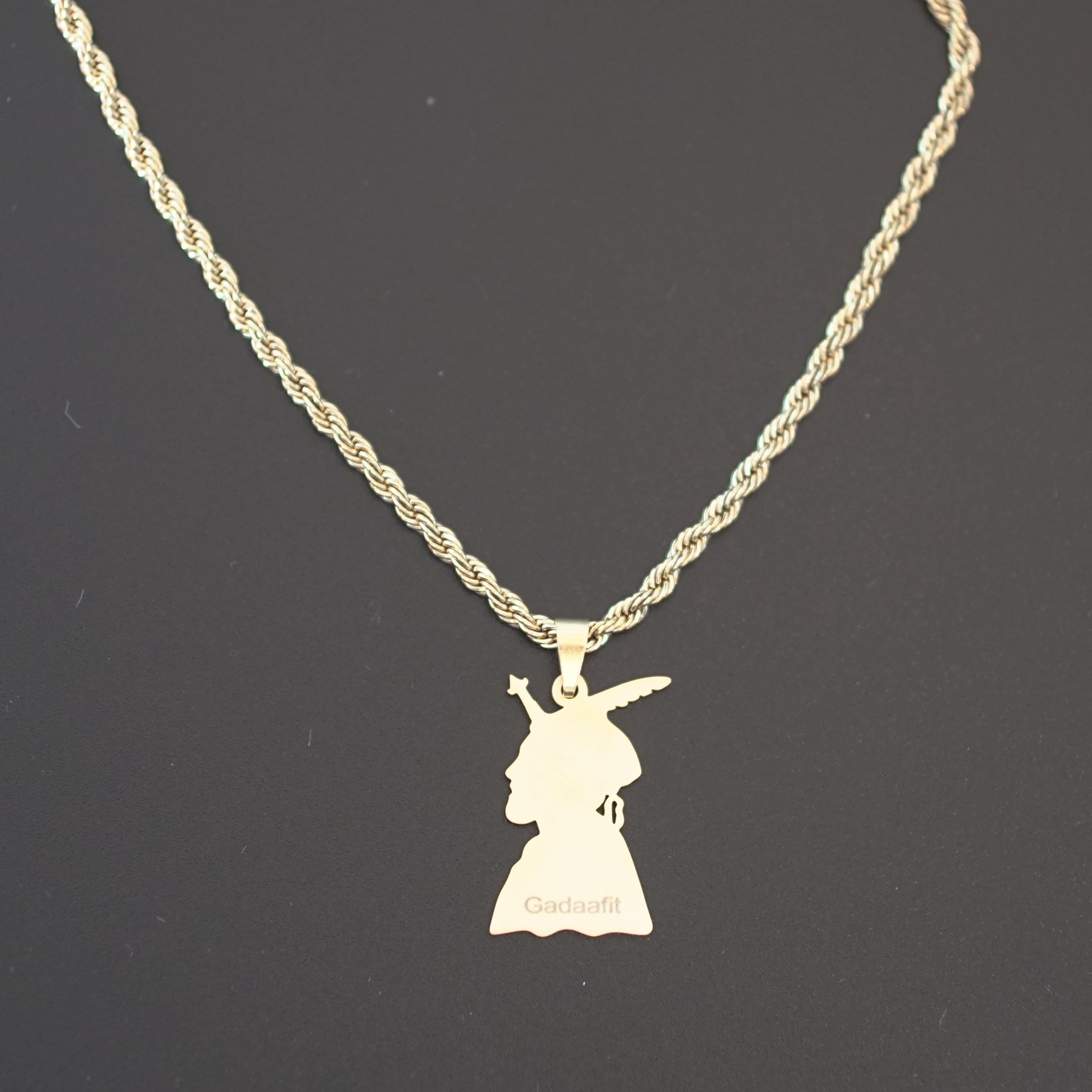 Introducing the Abbaa Gadaa necklace, a stunning piece of jewelry that combines traditional oromo design with modern elegance. Made from high-quality materials, this necklace features a unique pendant shaped like the ancient Abbaa Gadaa symbol, which represents the authority and leadership of the Oromo people. The pendant is expertly crafted from brass and plated with 14-karat gold for a luxurious shine.