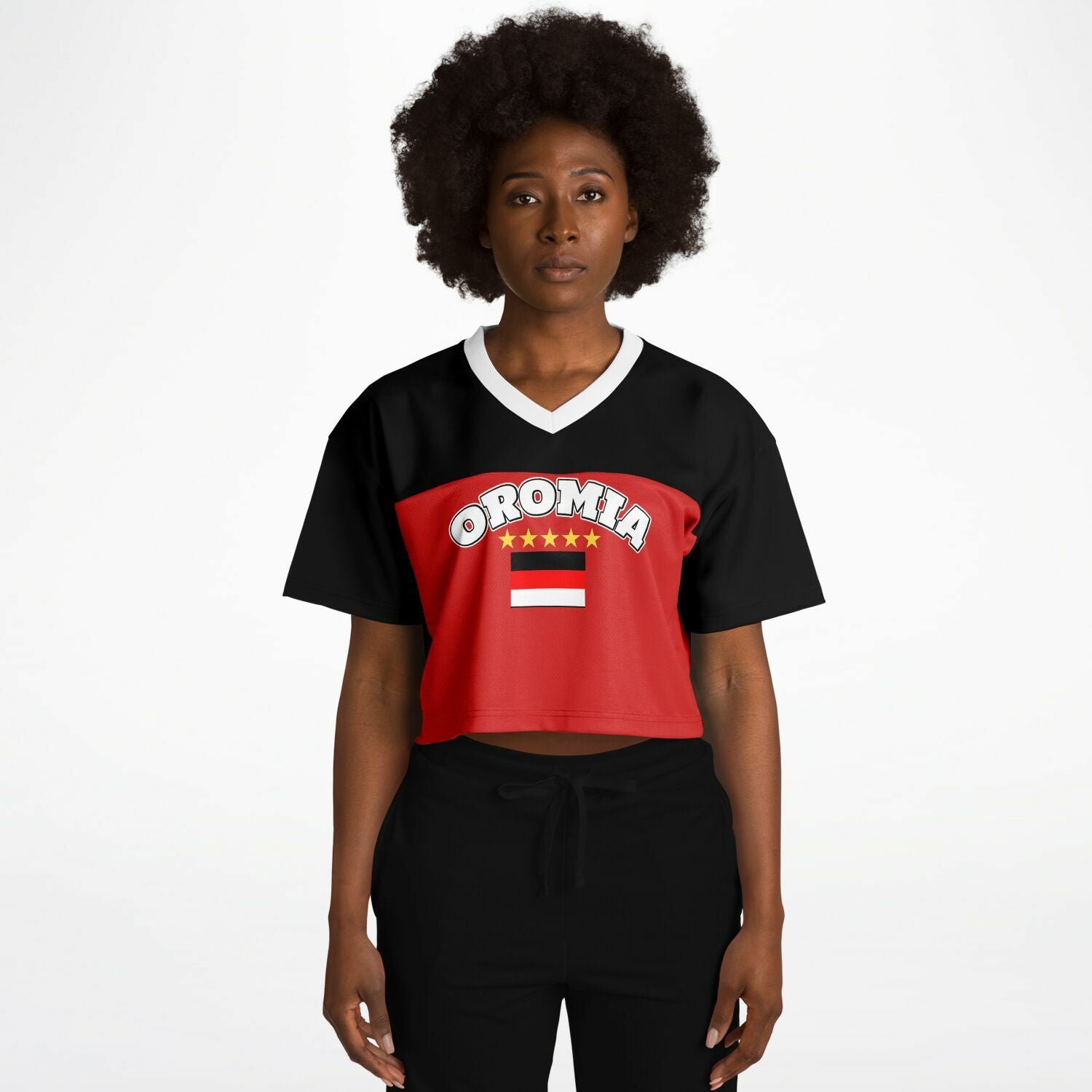 Show up in style with this cropped football jersey. This top is a must-have for any modern fashionista. The chic design is casual yet trendy, making it a perfect addition to your wardrobe essentials.